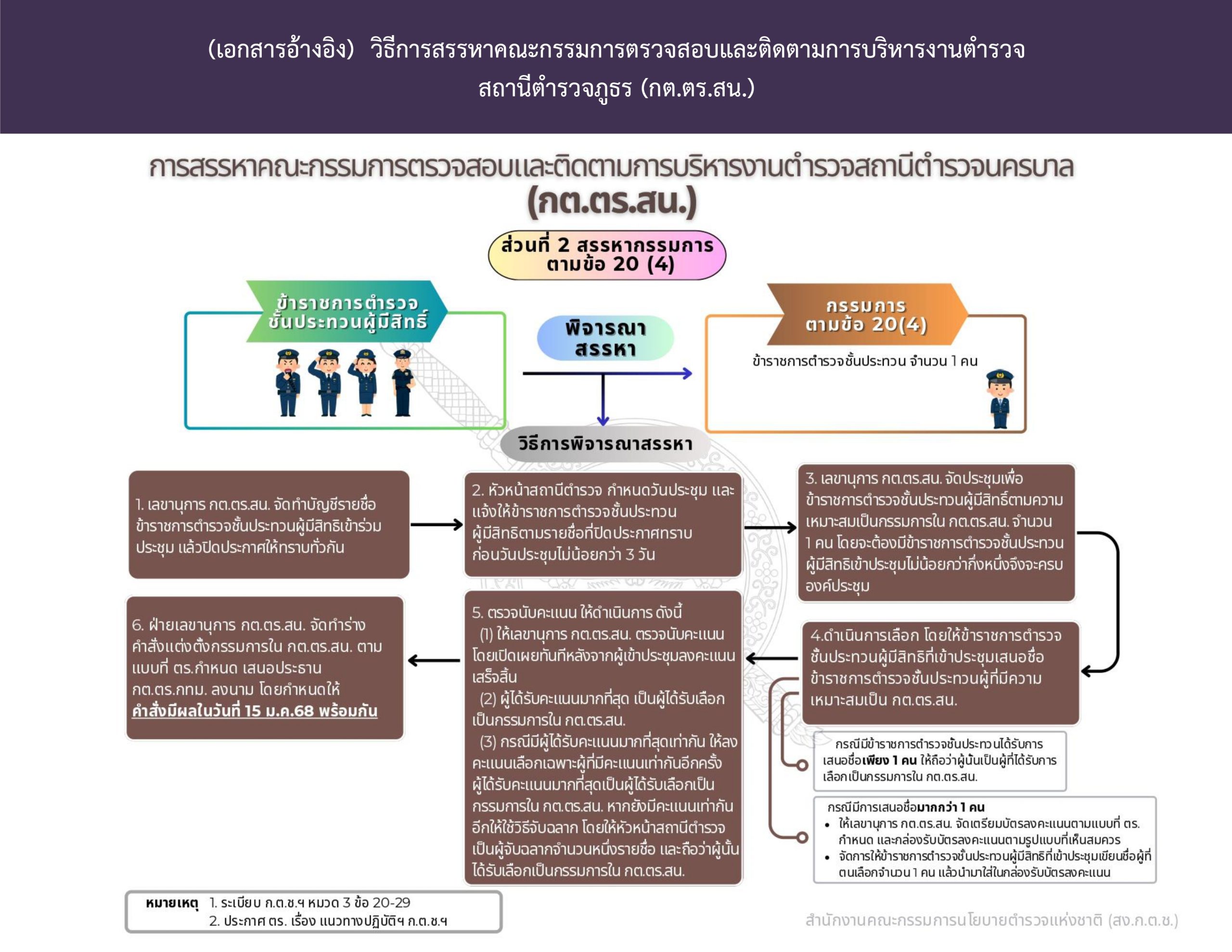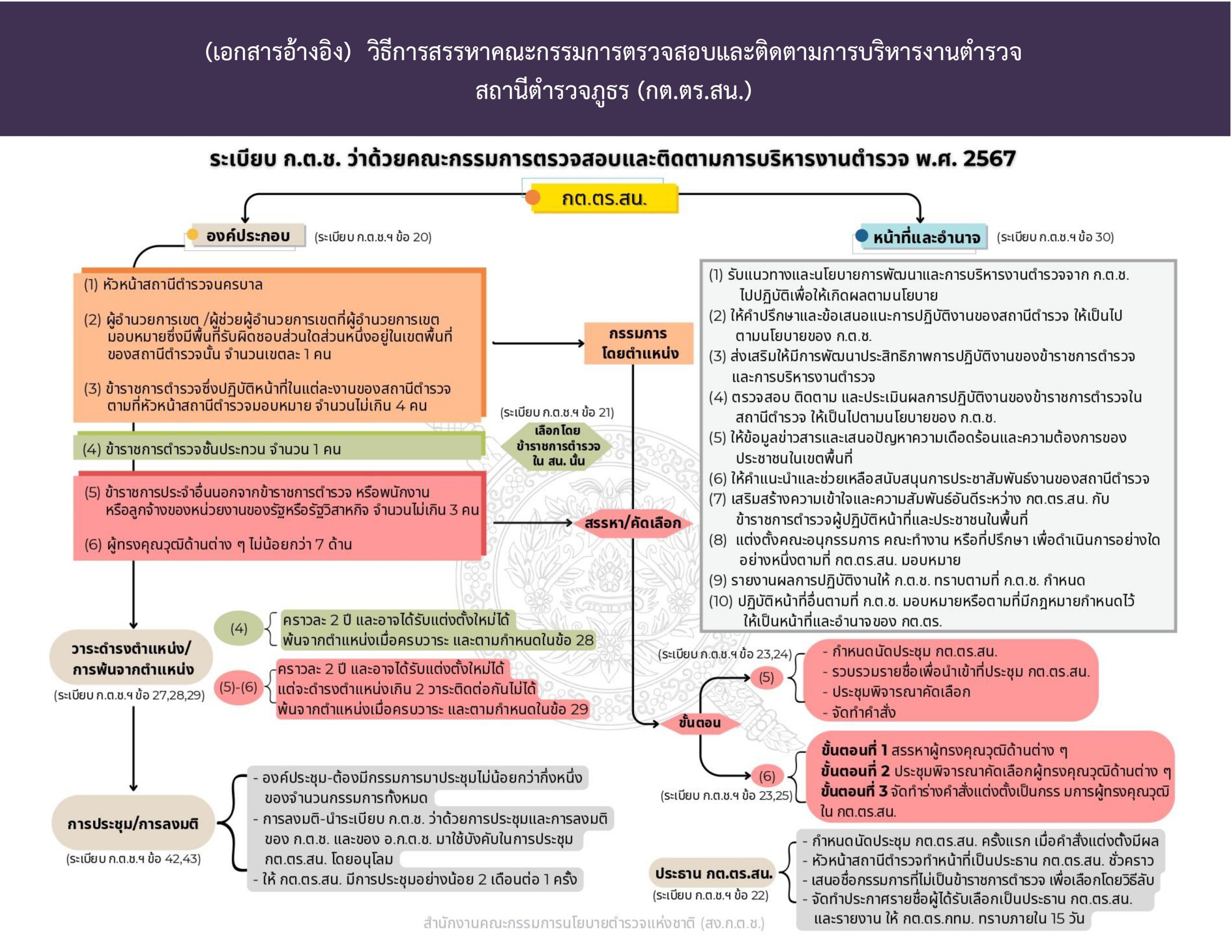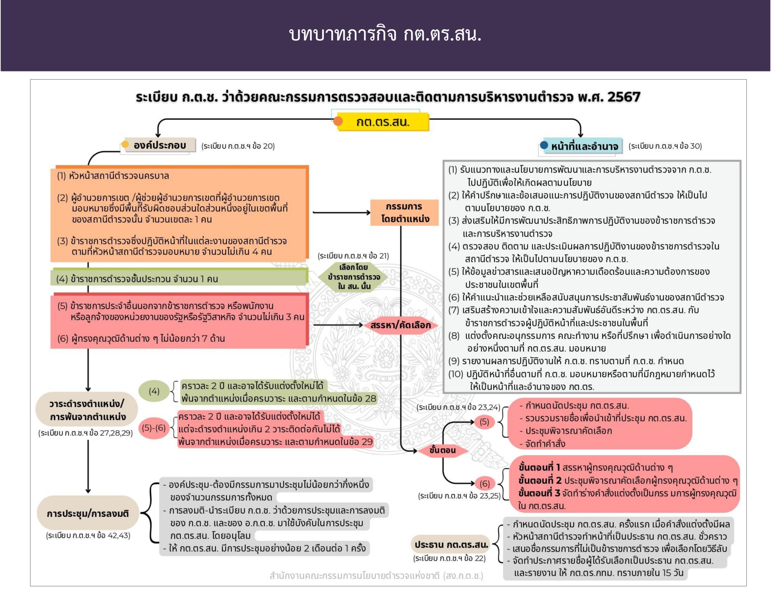 1. รับแนวทางและนโยบายการพัฒนาและการบริหารงานตำรวจจาก ก.ต.ช. ไปปฏิบัติเพื่อให้เกิดผลตามนโยบาย2. ให้คำปรึกษาและข้อเสนอแนะการปฏิบัติงานของสถานีตำรวจ ให้เป็นไปตามนโยบาย ก.ต.ช.3. ส่งเสริมให้มีการพัฒนาประสิทธิภาพการปฏิบัติงานของข้าราชการ และการบริหารงานตำรวจ4. ตรวจสอบ ติดตาม และประเมินผลการปฏิบัติงานของข้าราชการตำรวจในสถานีตำรวจ ให้เป็นไปตามนโยบาย ก.ต.ช.5. รับคำร้องเรียนของประชาชนเกี่ยวกับการปฏิบัติงานของข้าราชการตำรวจในสถานีตำรวจ และดำเนินการให้เป็นไปตามระเบียบ ก.ต.ช. ว่าด้วยการรับคำร้องเรียนของประชาชน เกี่ยวกับการปฏิบัติงานของข้าราชการตำรวจ6. ให้ข้อมูลข่าวสาร และเสนอปัญหาความเดือดร้อน และความต้องการของประชาชนในเขตพื้นที่7. ให้คำแนะนำ และช่วยเหลือสนับสนุนการประชาสัมพันธ์งานของสถานีตำรวจ8. แต่งตั้งคณะอนุกรรมการ คณะทำงาน หรือที่ปรึกษา เพื่อดำเนินการอย่างใดอย่างหนึ่งตามที่ กต.ตร.สน. มอบหมาย9. รายงานผลการปฏิบัติงานให้ ก.ต.ช. ทราบ ตามที่ ก.ต.ช. กำหนด10. อำนาจหน้าที่อื่นตามที่ ก.ต.ช. มอบหมาย