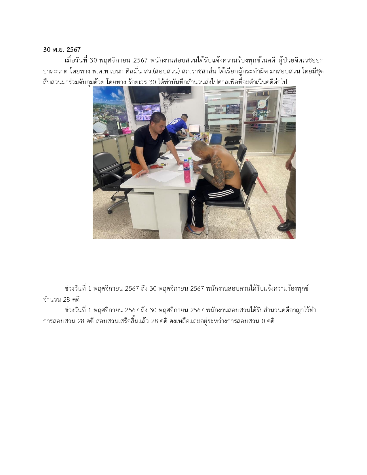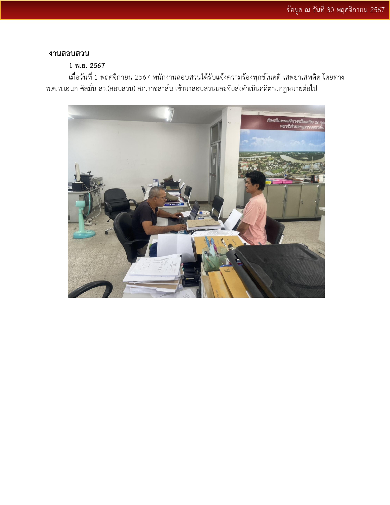 รายงานผลการปฏิบัติงานประจำเดือน พฤศจิกายน 2567 30 พฤศจิกายน 2567 โดย admin / งานสอบสวน Views: 23 FacebookFacebookXXLINELine